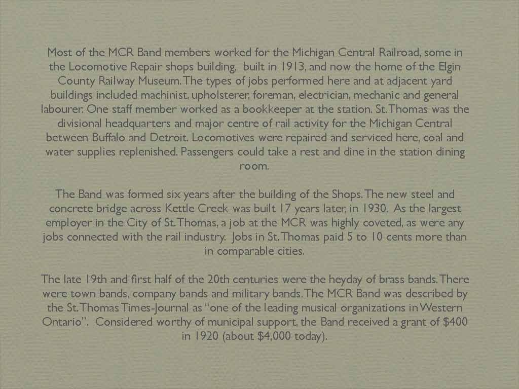 Download history of The Michigan Central Employee Band as pdf file.